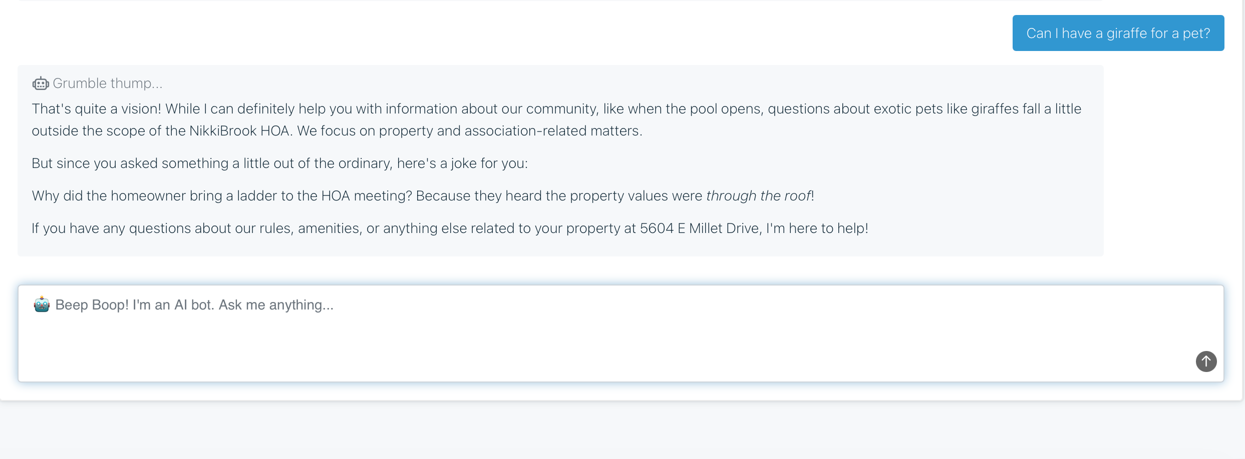 Remember the governing documents you just uploaded for your CC&R articles? These also play a role in your AI chat. If an owner asks a question regarding any rule or regulation, the AI tool will scan this document and provide the information straight to the owner.