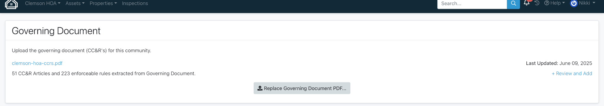 If you ever have any updates to your governing documents, you can easily replace the current uploaded file by clicking “Replace Governing Document PDF”. This will allow you to ensure you have the most up to date document available.