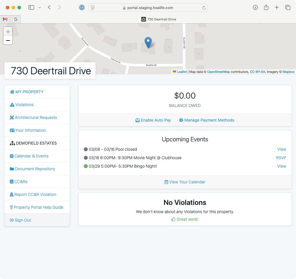 As you may expect, your property owners can see all the upcoming events they've been invited to, RSVP, or see the whole calendar in the Homeowner Portal.